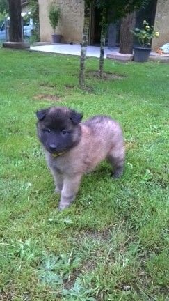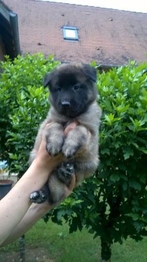 Mâle à la très belle couleur sable charbonné. Chiot doux et câlin, proche de l'homme. Certificat de bonne santé, pucé et primo-vacciné. Parti vivre à Aubas en Dordogne chez Mr et Mme G.
