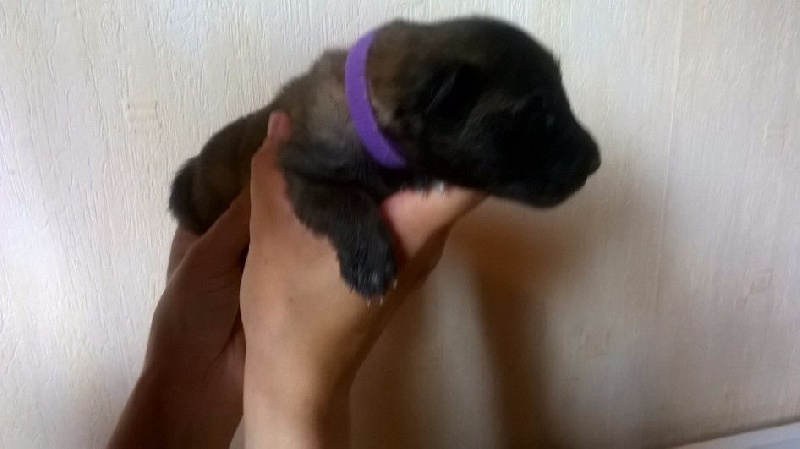 Femelle fauve charbonné. Participera à notre programme d'élevage et produira sous notre affixe. Ira sans doute à l'école du chiot de boulazac.